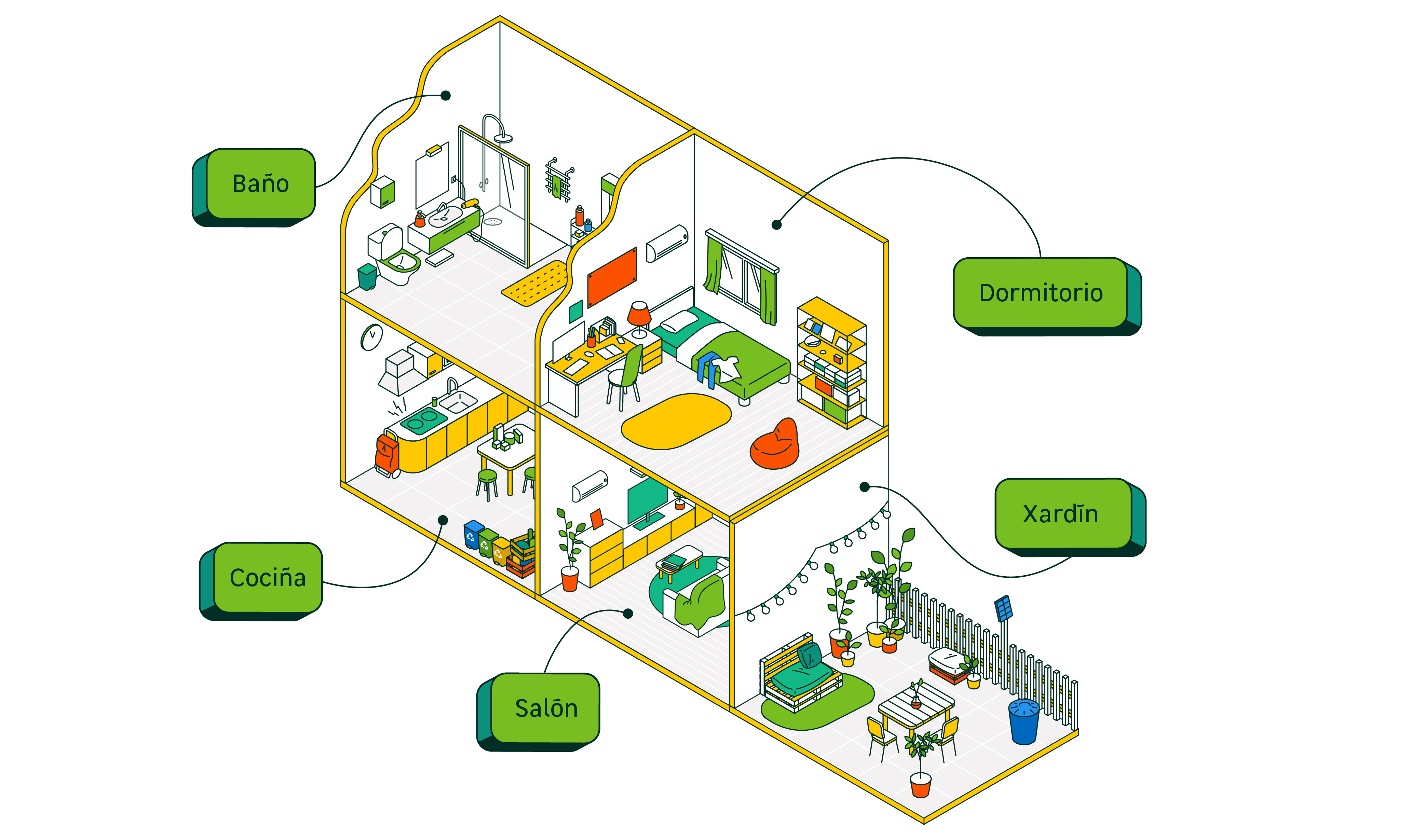 Conceptos sobre os que hai que reflexionar para asegurar que os fogares teñan o menor impacto posíbel, tanto sobre o planeta como sobre as persoas.